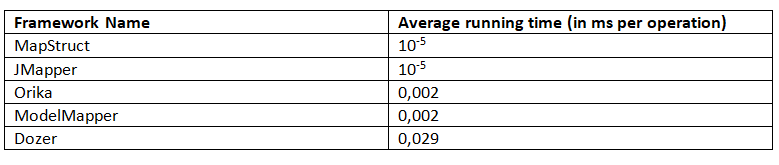 所有的基準測試都表明,根據場景的不同,MapStruct 和 JMapper 都是不錯的選擇,儘管 MapStruct 對 SingleShotTime 給出的結果要差得多。