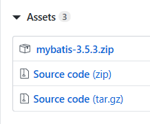 點擊連接,選擇下載Mybatis的jar包。這裡有三個文件,基礎使用的話,下載第一個mybatis-3.5.3.zip即可,如果需要查看源碼的話,建議將Source code也下載下來,Windows使用zip,Ubuntu使用tar.gz;